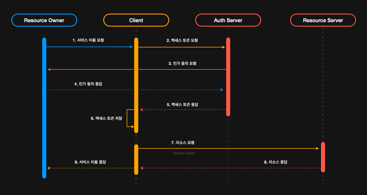- 사용자가 이를 승인하면, 인증 서버는 클라이언트에게 액세스 토큰을 발급합니다.