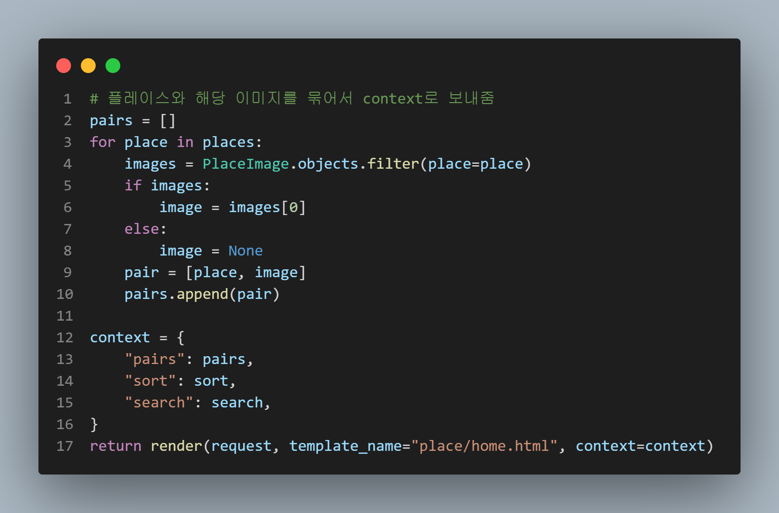 플레이스와 연결된 이미지를 모두 필터링해서 그 중 첫번째 이미지를 플레이스와 하나로 묶어서 보낸다.