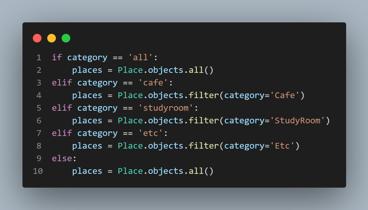 사용자들이 편하게 모각코 모집글과 플레이스를 찾아볼 수 있도록 필터링 기능을 구현하기로 했다.