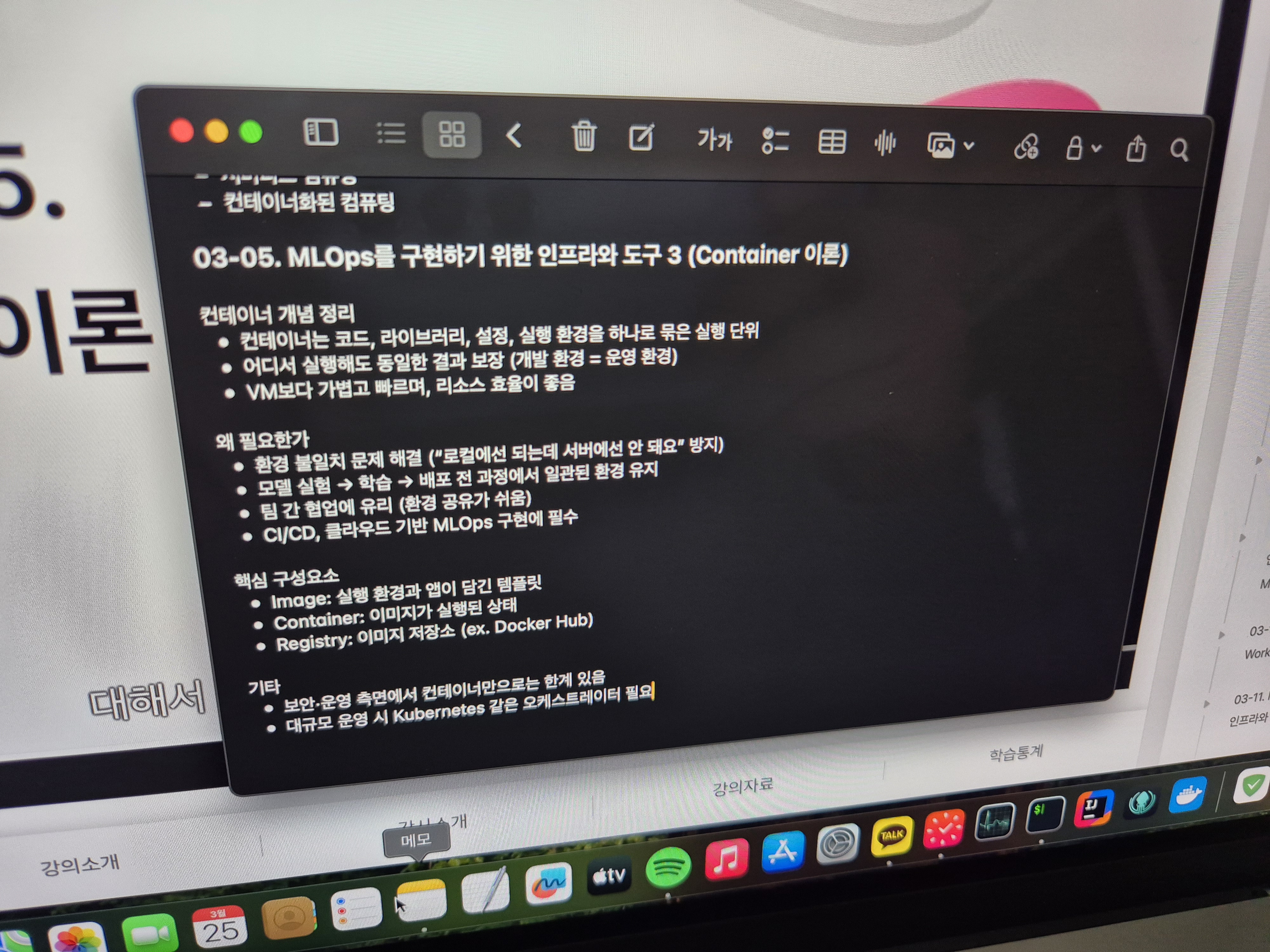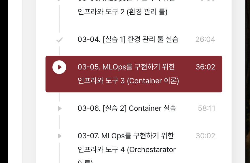 오늘은 MLOps 인프라 요소 중 하나인 컨테이너(Container)에 대해 배웠습니다.