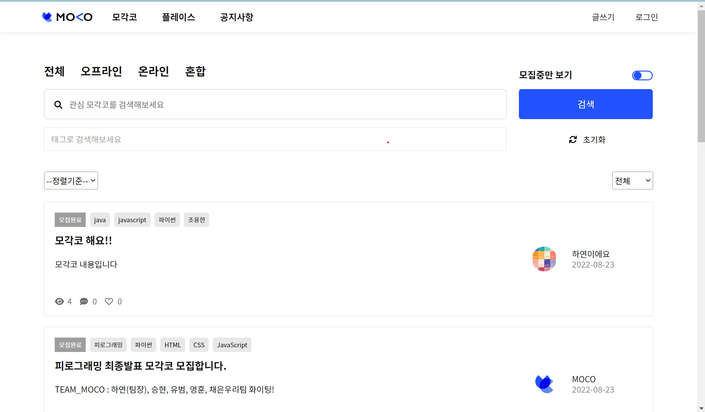 [프로젝트] MOCO 모각코를 위한 웹서비스 12 - 최종 배포 본문