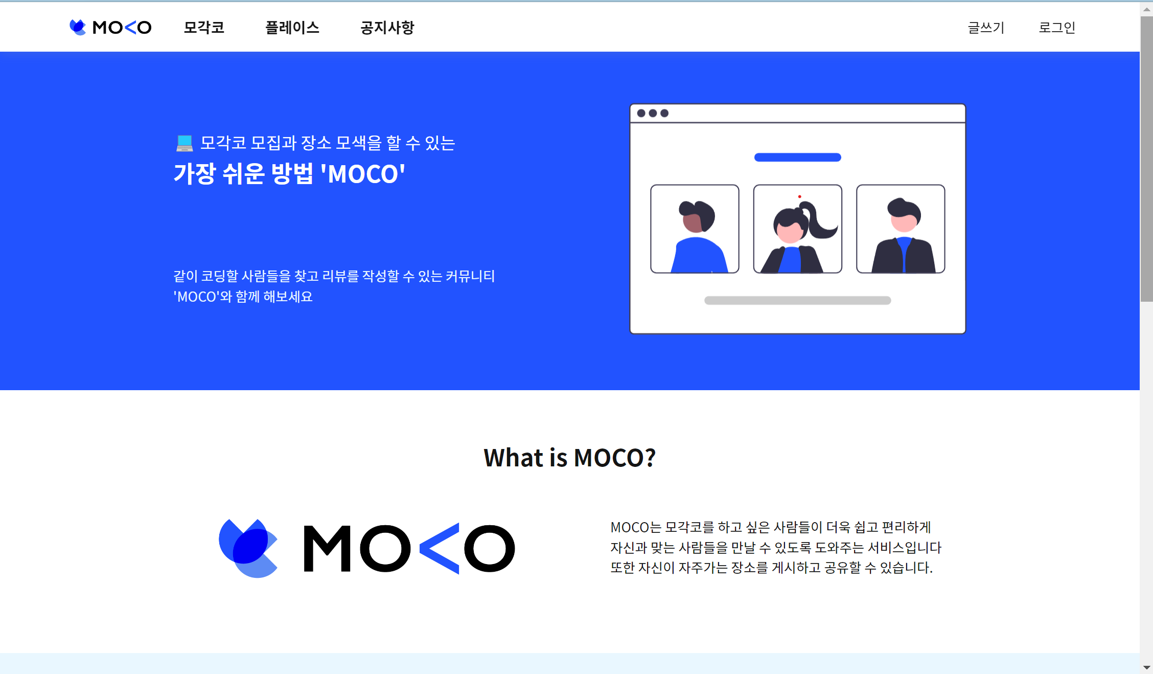 💻 모각코 모집과 장소 모색을 할 수 있는 가장 쉬운 방법 'MOCO' 같이 코딩할 사람들을 찾고 리뷰를 작성할 수 있는 커뮤니티 'MOCO'와 함께 해보세요