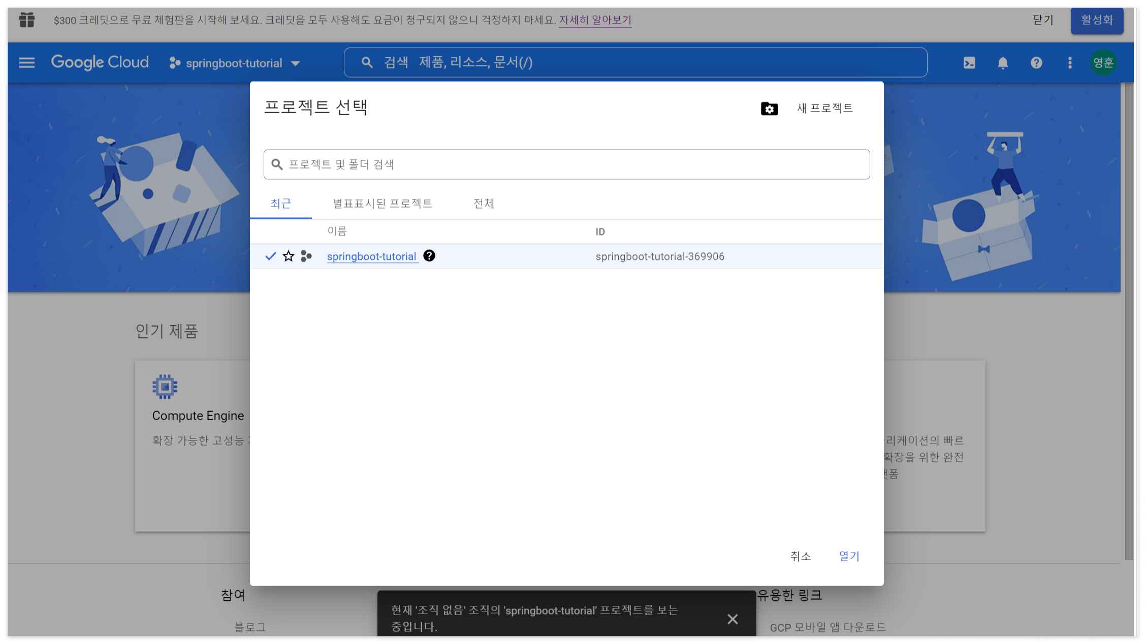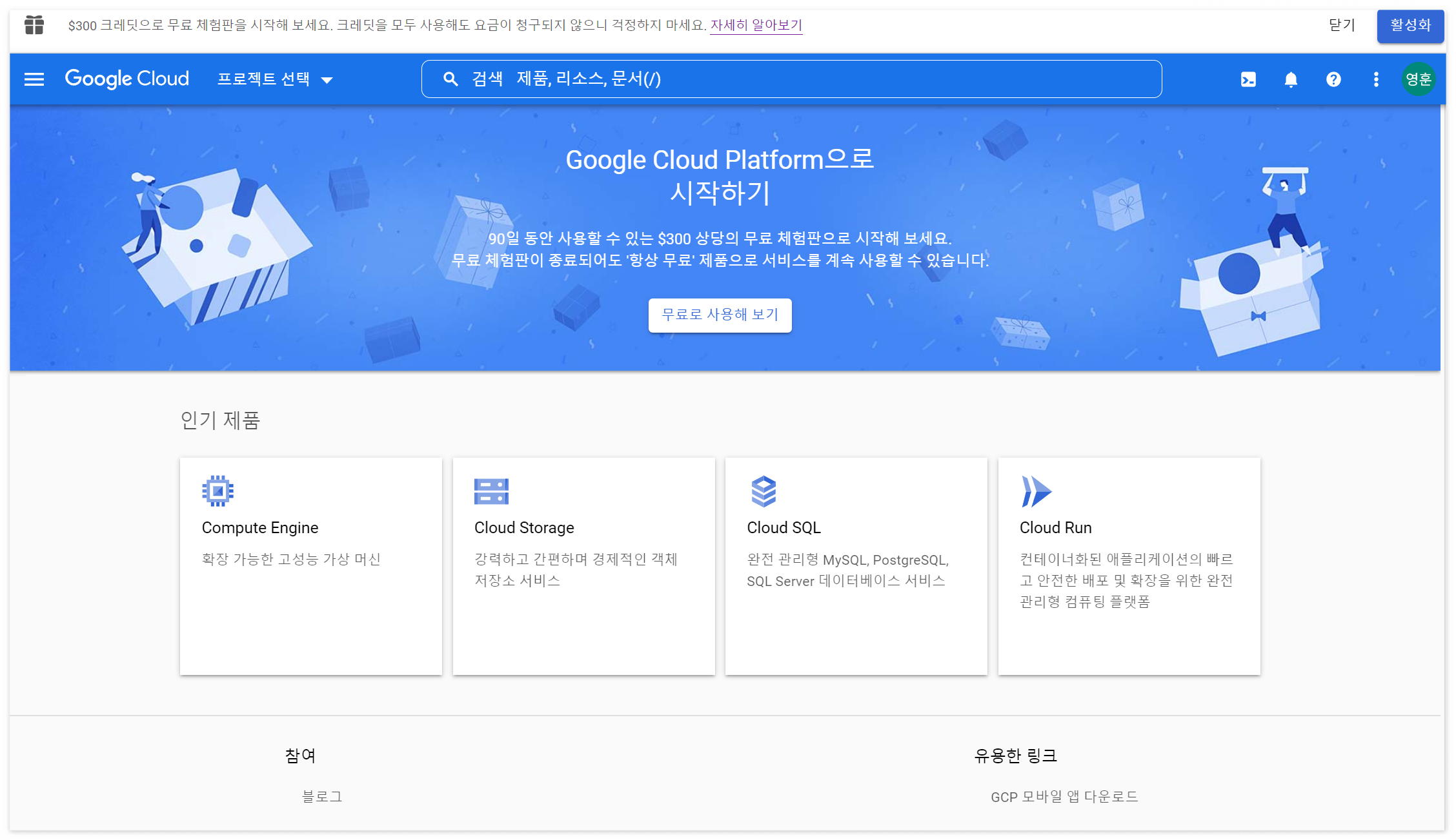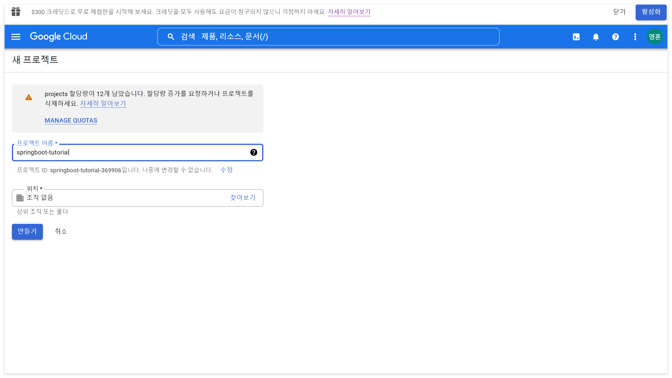 GCP에 접속한 뒤 새 프로젝트를 생성한다.