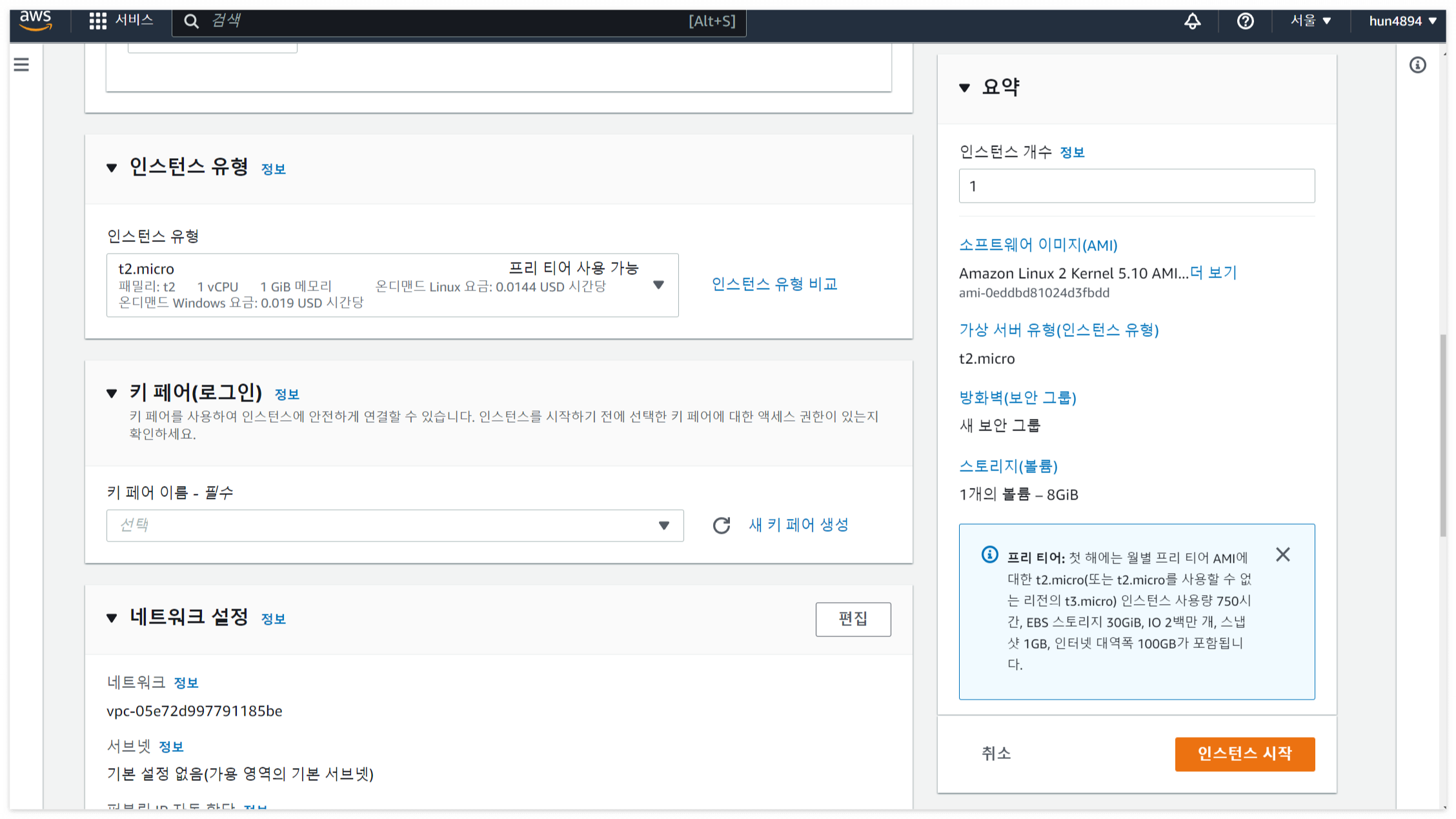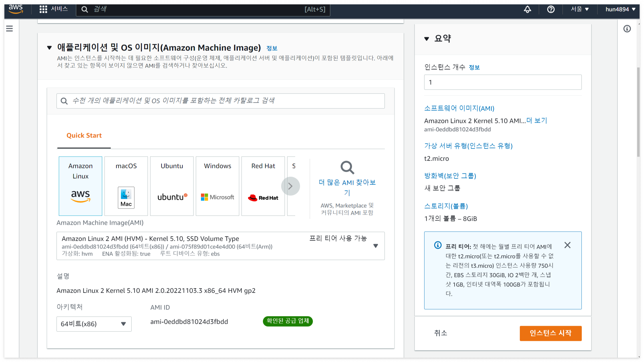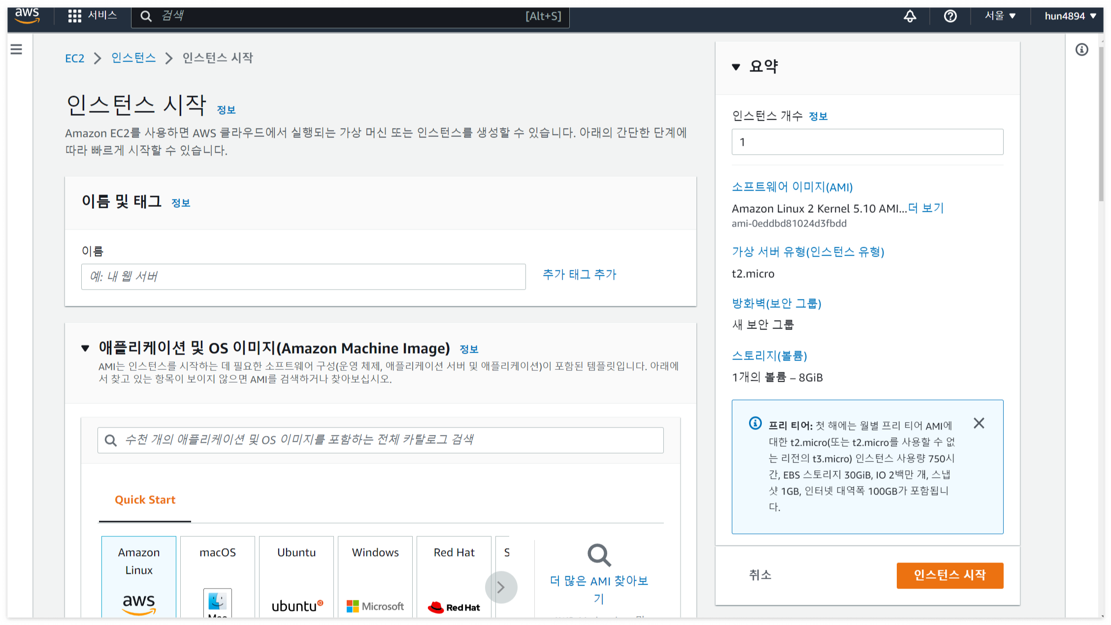 AWS EC2에 접속해서 인스턴스 생성을 시작한다.