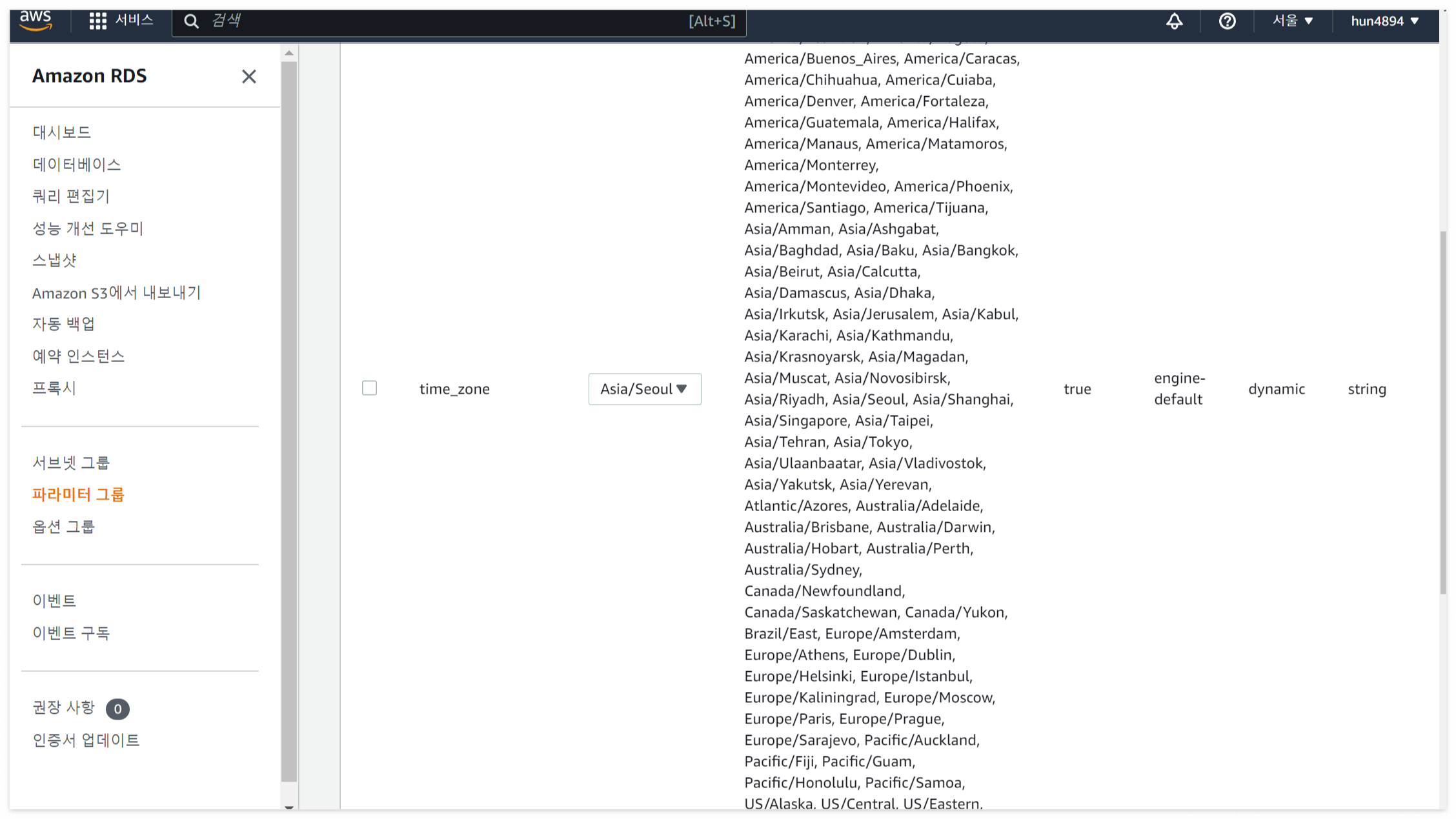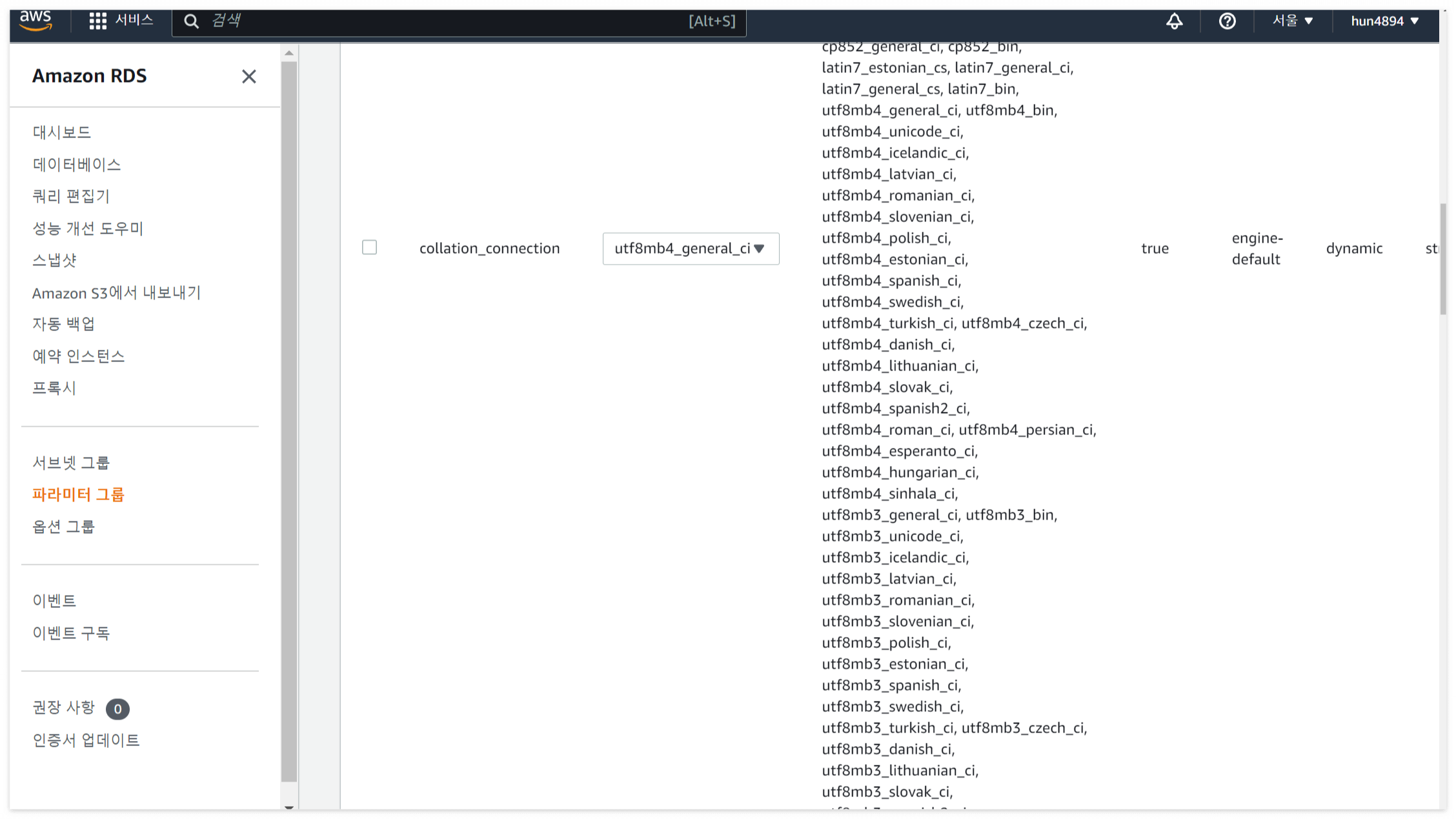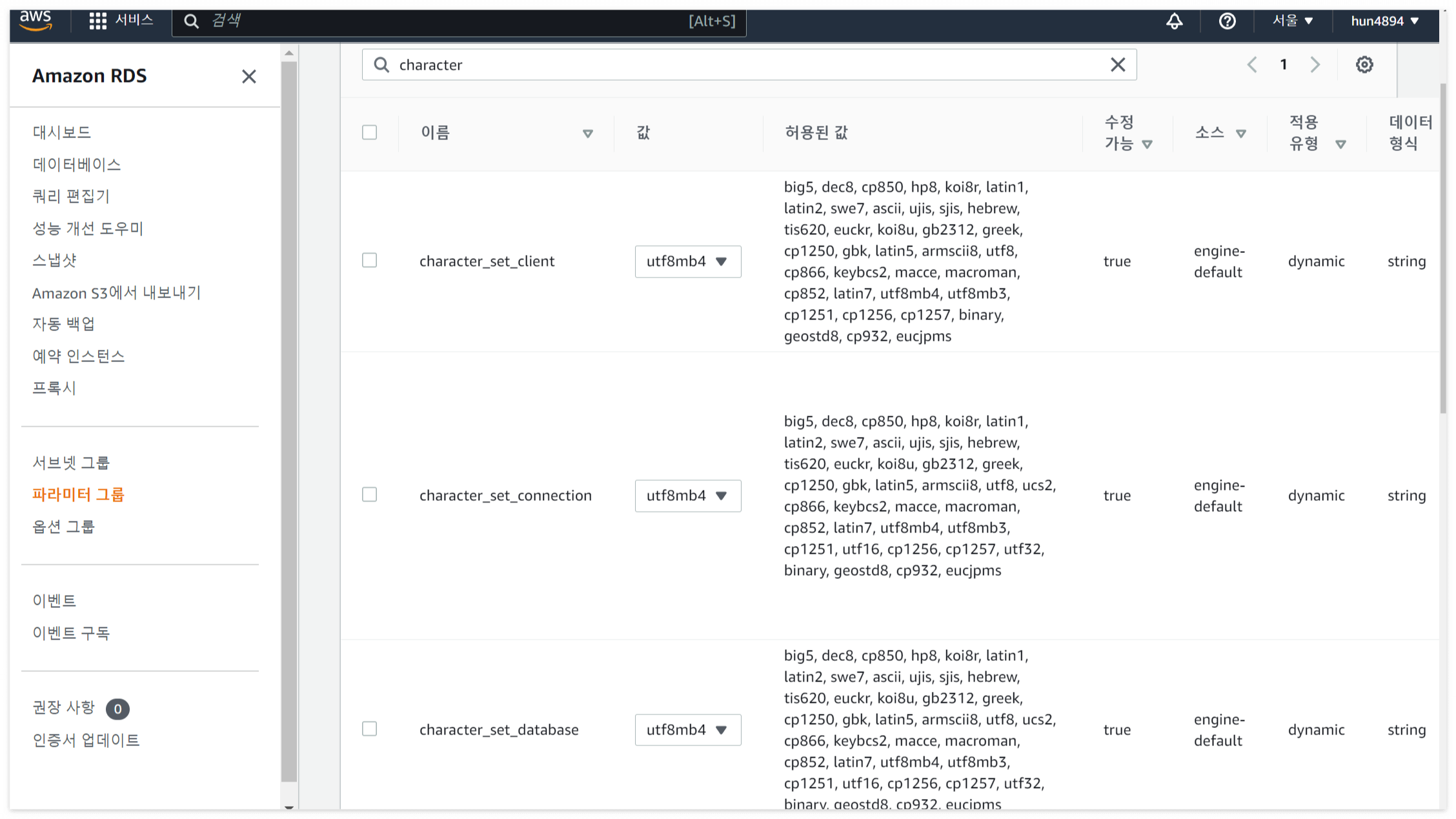 RDS를 생성한 뒤 타임존, Character Set, Max Connection 설정을 해야한다.