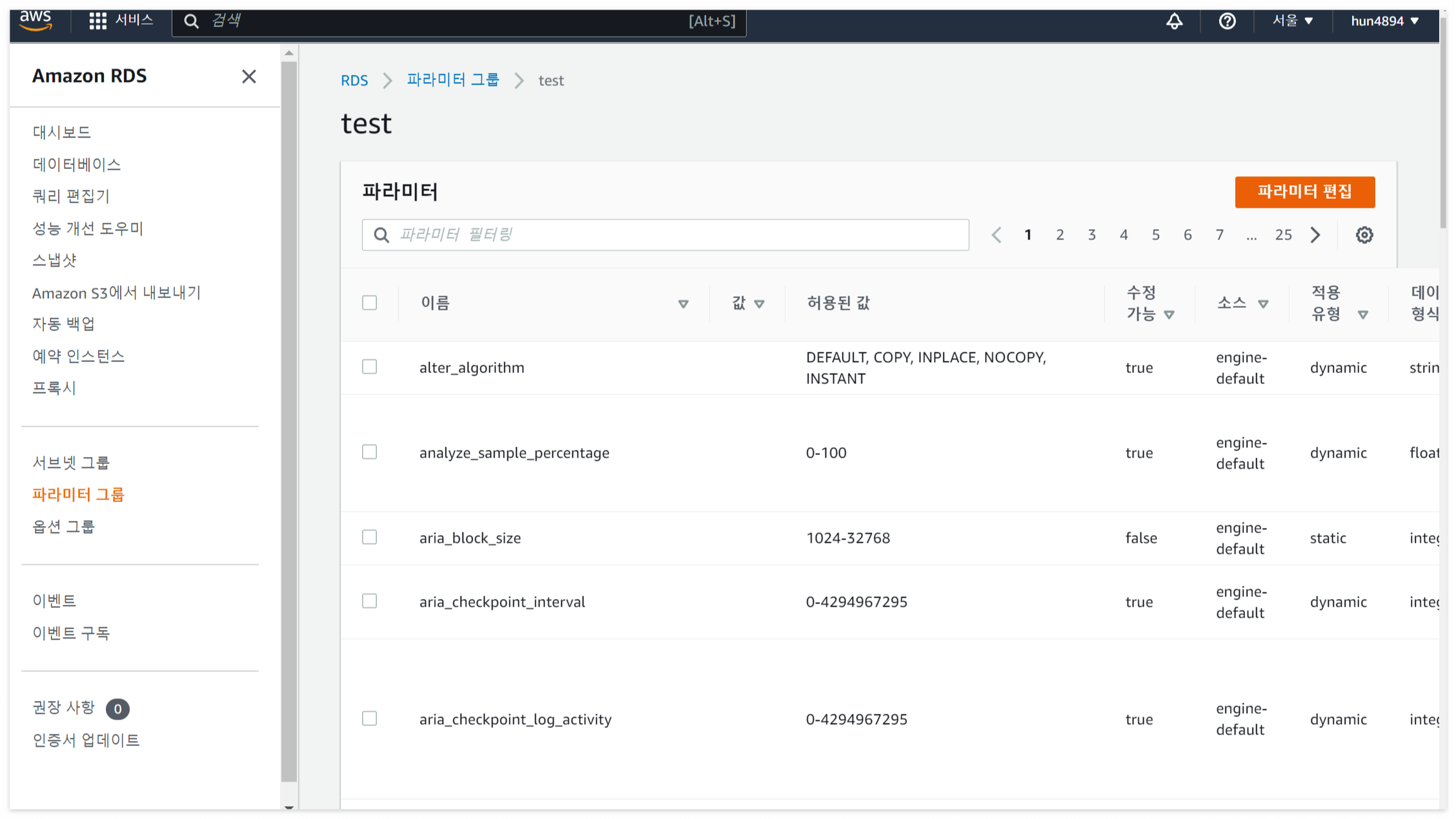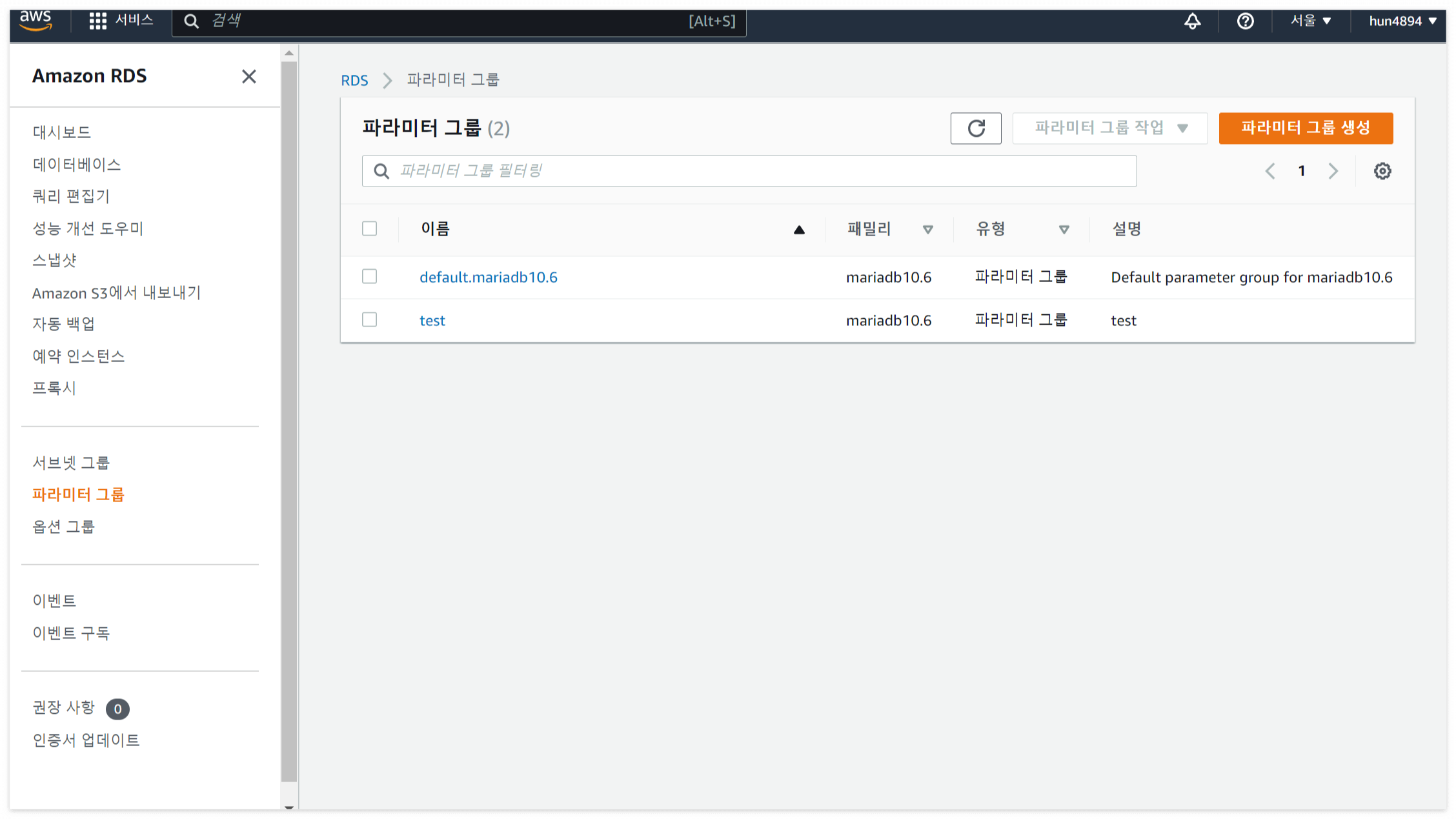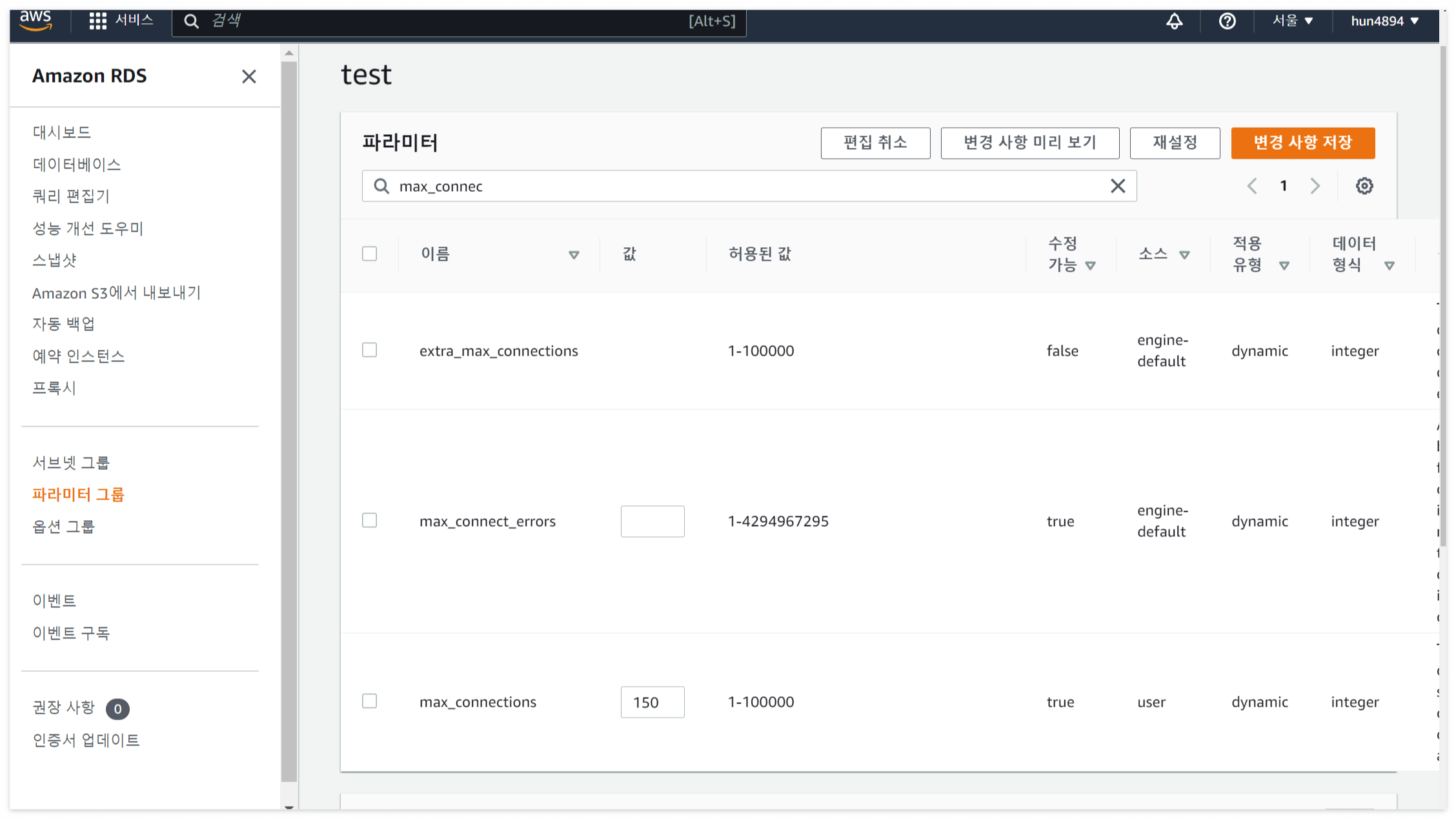 RDS를 생성한 뒤 타임존, Character Set, Max Connection 설정을 해야한다.