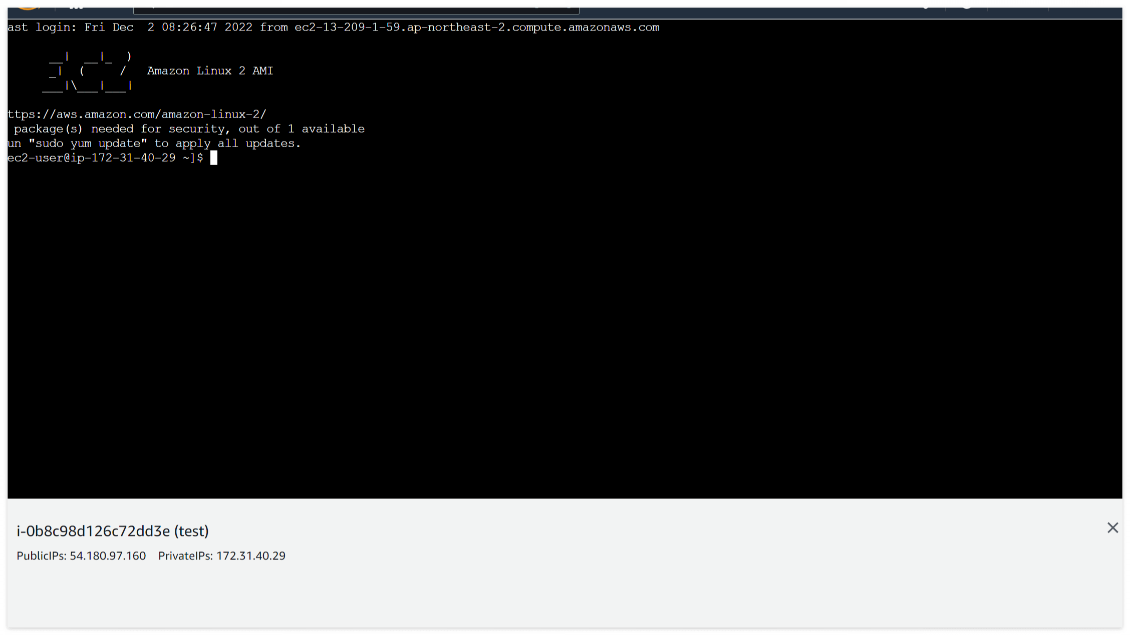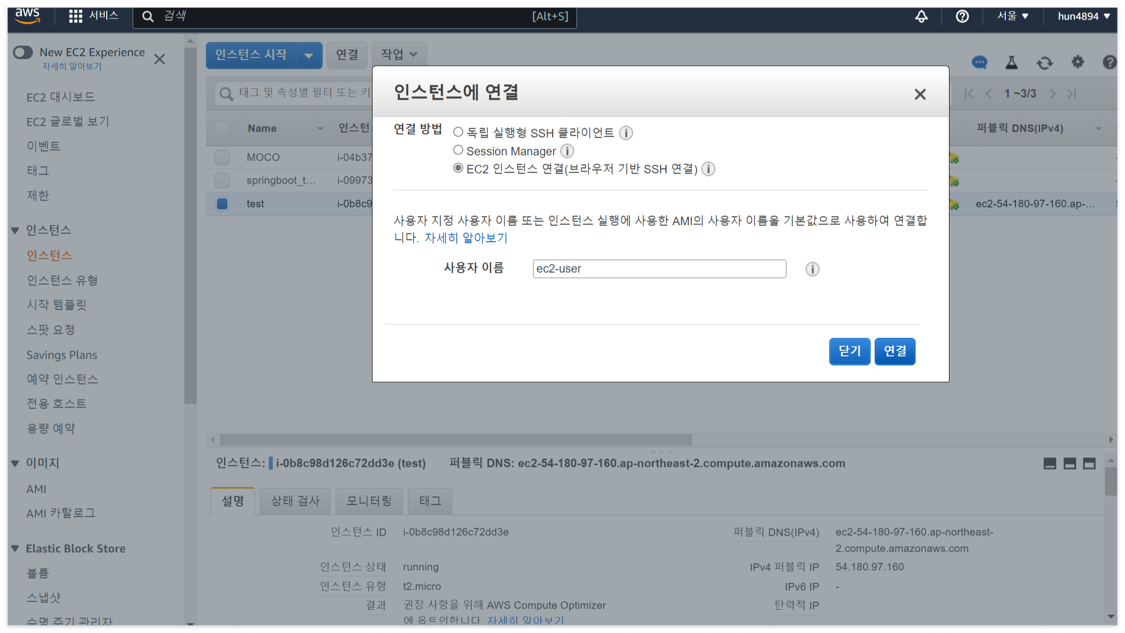 AWS에서 제공하는 브라우저 기반 SSH 연결을 사용하면 편하게 서버에 접속할 수 있다.