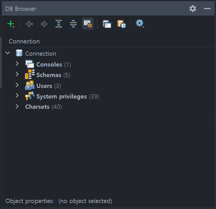 접속은 잘 되지만 아직 DB 테이블이 생성되지 않았다.