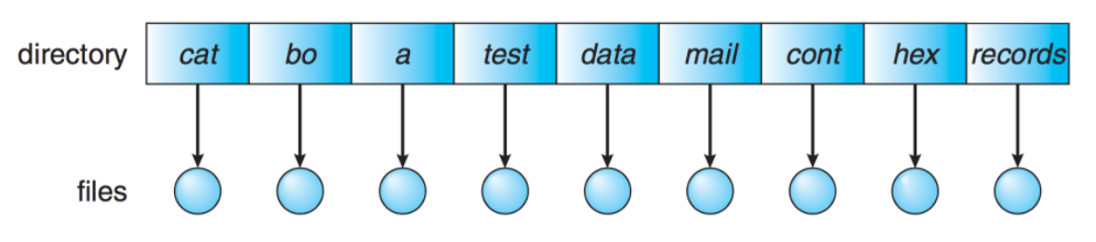 - 1단계 디렉터리는 모든 파일들이 디렉터리 밑에 존재하는 형태이다.